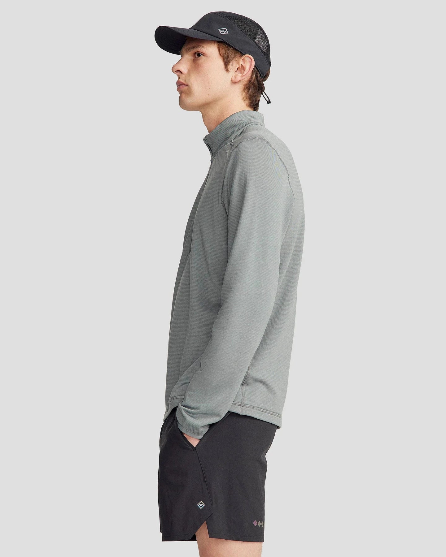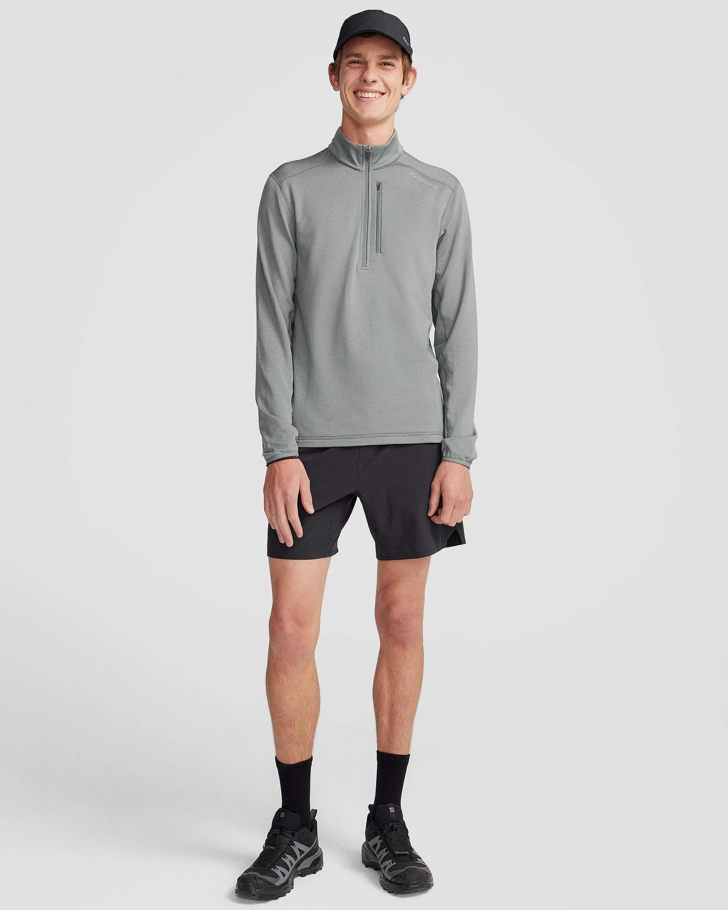 Technical ¼ zip midlayer pullover, made for cool weather activities using carbon capture technology.