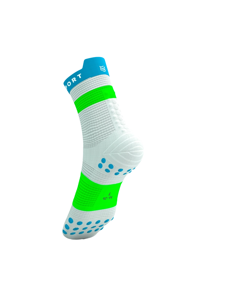 Compressport Pro Racing Socks V4.0 Run Quarter High White/Norse Blue/Neon Green / 2.5 - 5