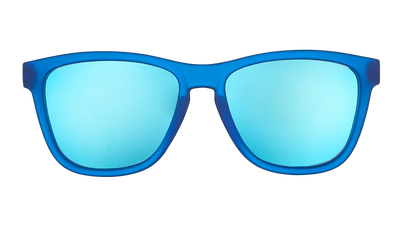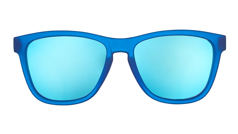 These blue-on-blue sunglasses are what fever dreams are made of. The no slip, no bounce frames stay put no matter how wildly you sweat, sleep walk, or travel between realms. Blue polarised lenses offer UV400 protection and reduce glare off luck dragon fur.